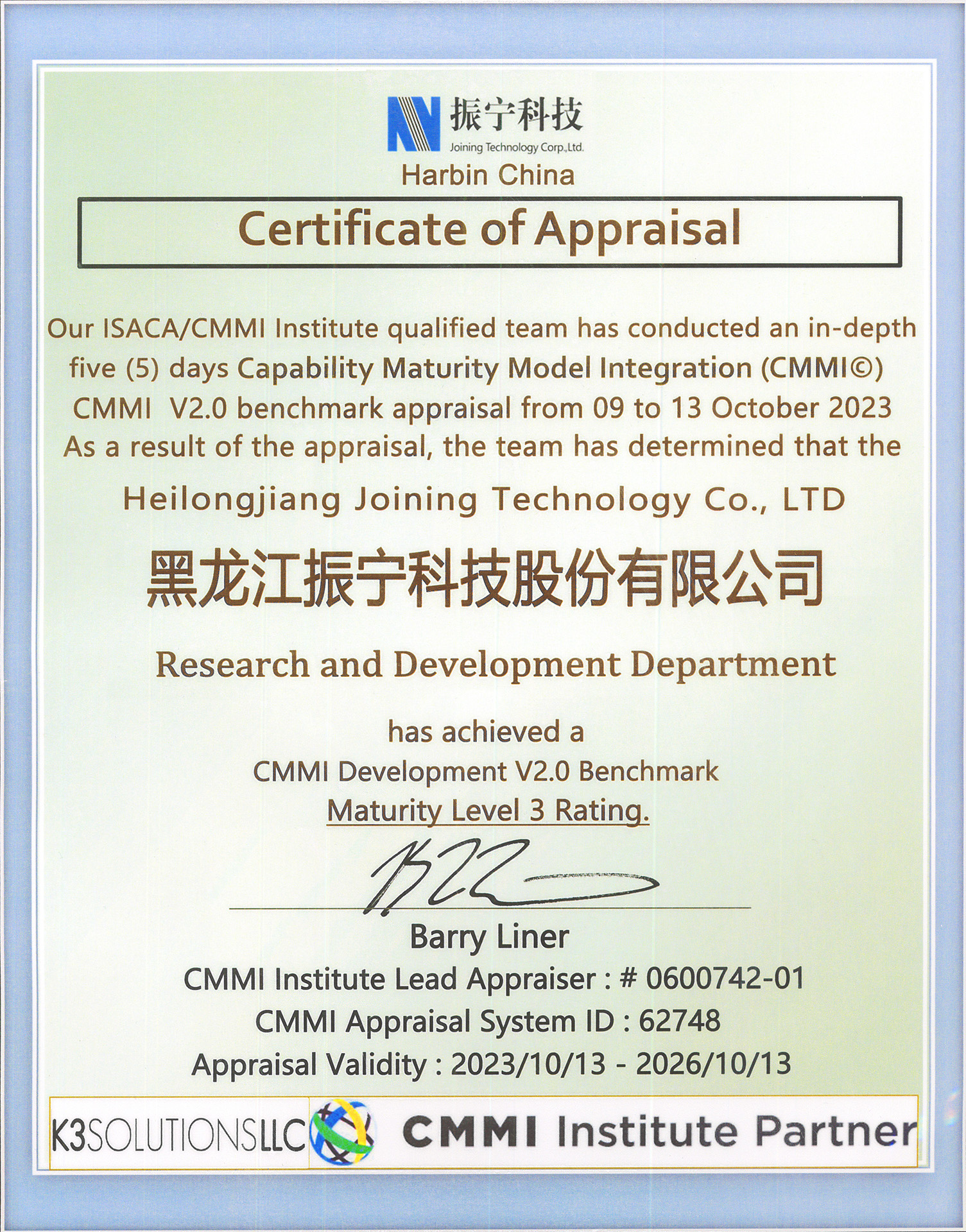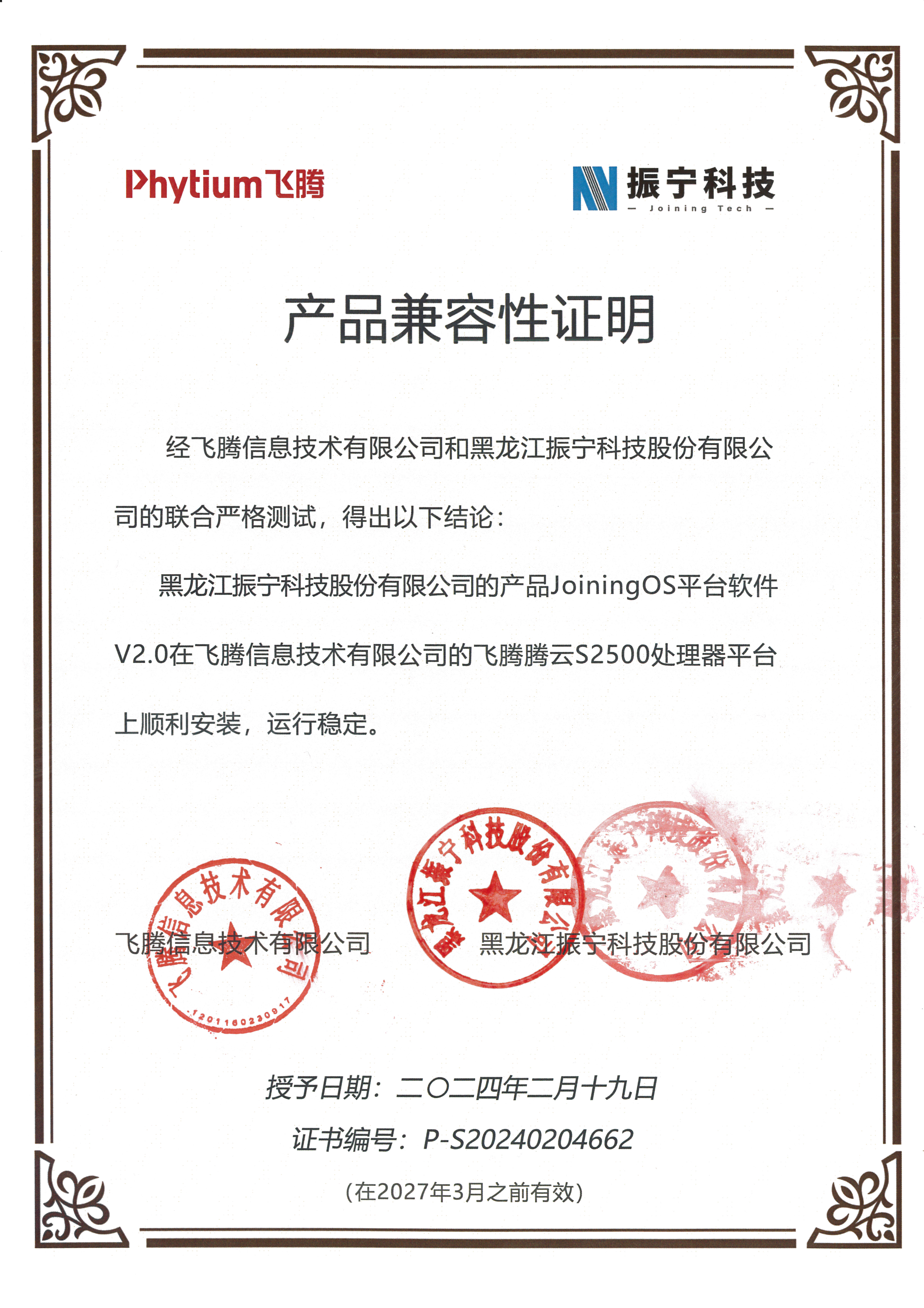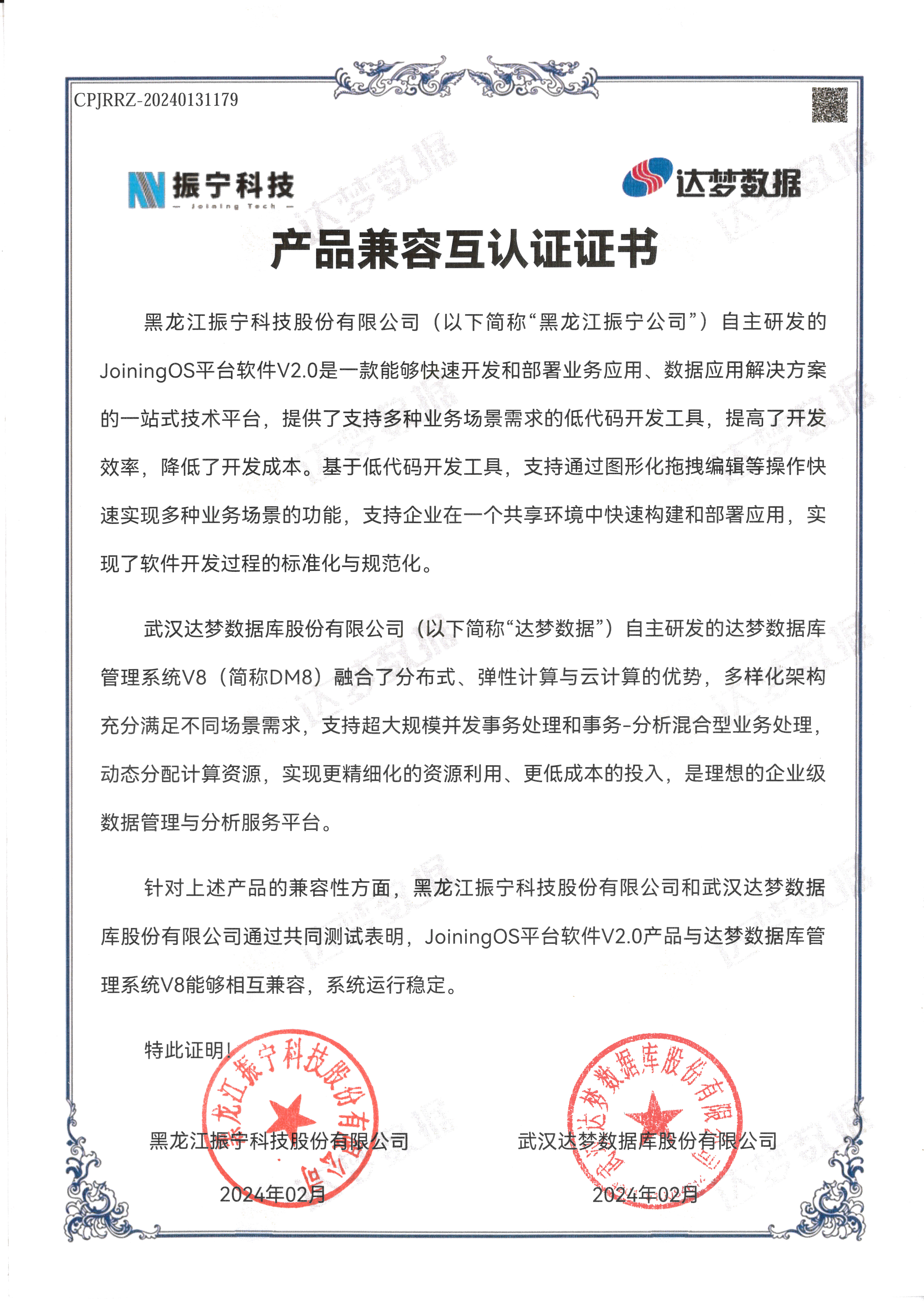 JoiningOS软件基础平台荣获“2023第十七届通信产业榜助力新型工业化标杆平台”、“2023工业互联网100佳”、“2023年度智能制造优秀推荐产品”、蝉联“2024、2025年工业互联网产业调研100家企业”、“2024、2025年特色专业工业互联网50家”、入选“哈尔滨软件产品研发项目补助名单”、获评黑龙江软件与信息服务企业50强;2024年公司研发的JoiningOS软件平台被中华人民共和国科学技术部授予“创新概念的全域化数智生态技术底座”的科学技术成果评价证书,此科技成果为国家级科技成果。